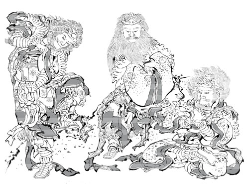 左から羊の精、魍魎(もうりょう)、太逢神